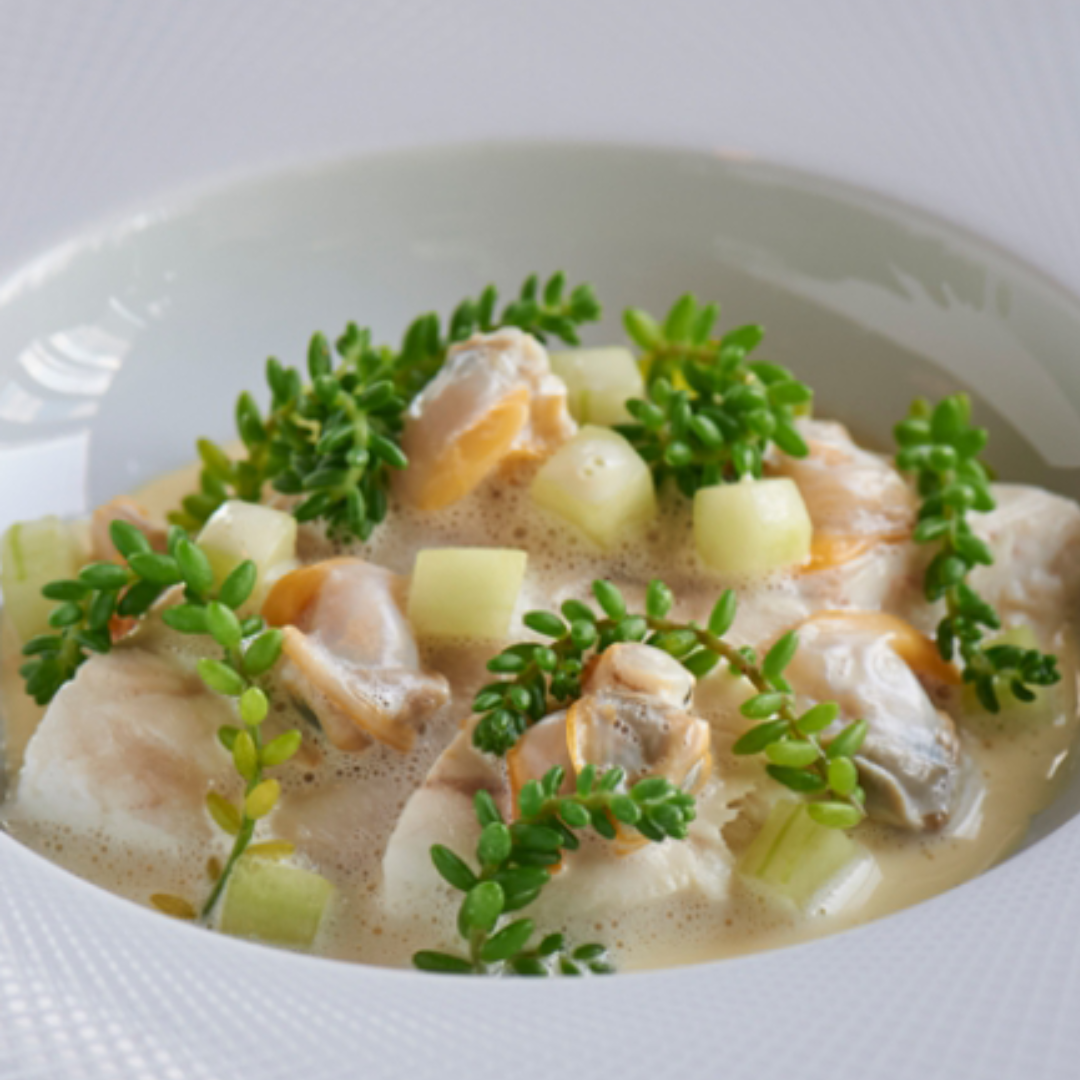 Broad bean, quinoa, pickled cucumber & dill white wine sauce finished with trout roe